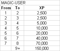 Is everybody following my proposal? A few XP are bound to be wasted along the way if we zero out the totals at every advancement. You could instead subtract the XP needed from your current total. That's only slightly more complicated. If you subtract rather than zero out completely, the charts above are exactly the same totals as the Expert rulebook, only expressed differently.