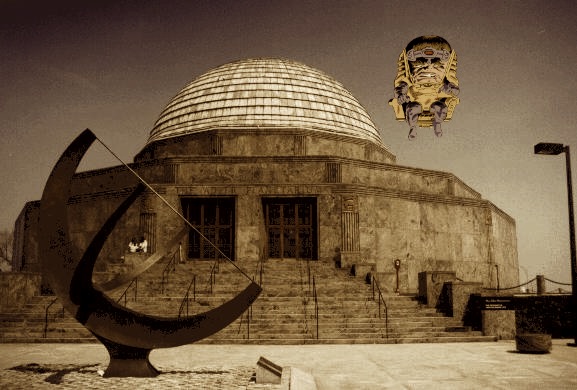 I thinly there is a UFO behind the leader. The true masterminds of this whole affair!!