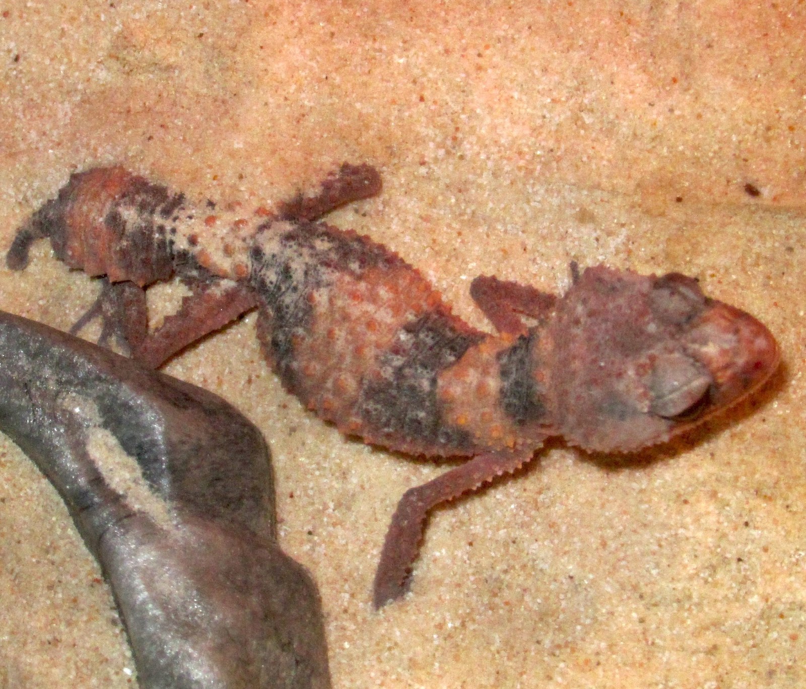 His name is Slut The Dragon and Mandy says he's Nephrurus wheeleri--a banded knob-tailed gecko.