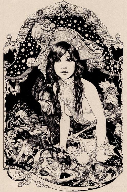 There is a cruel Queen of Hearts: she is in a different castle and she is on a different mountain and she sleeps in a different wooden box, but she is also hiding and dreaming. She dreams into being a world unending, unbeginning, with wonder and murder, disruption and unreason. And melancholy green gardens. And it is there now. And hers.