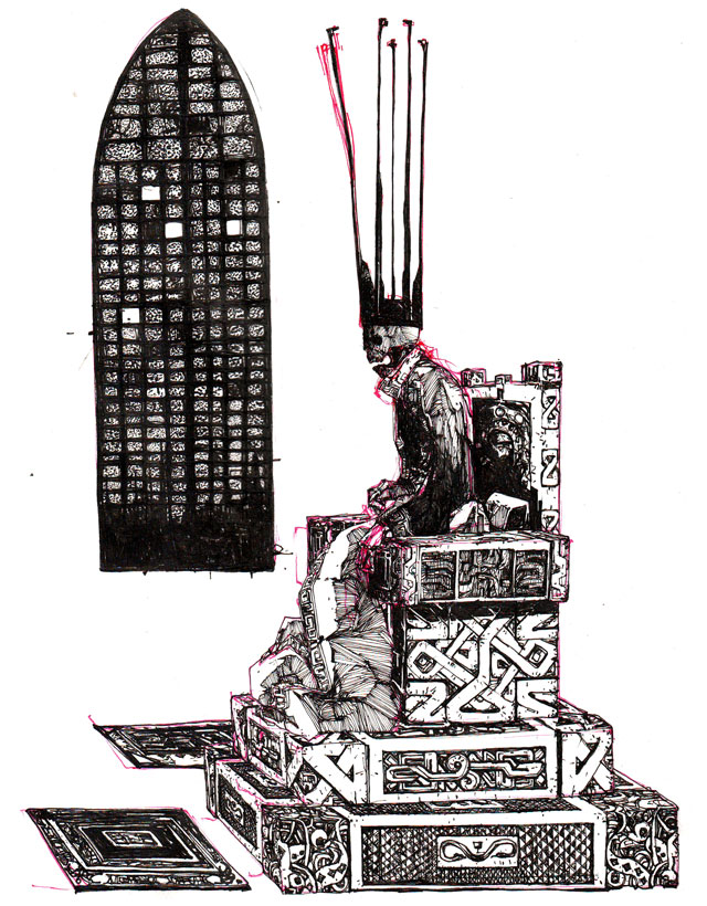 From somewhere deep within the unknown corridors of the Cruel City, the Hex King emerges each night onto the tower's balcony and whispers enigmatic decrees.