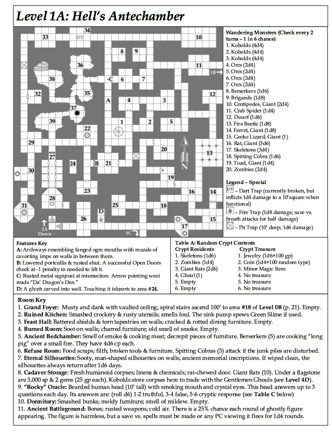 Not only does, for example, Room 8 immediately become a lot spookier and more tactically complicated--the cadavers must be hanging from the ceiling on hooks--it goes a long way toward explaining why Stonehell is full of different monsters so close to each other--they have a rough time getting around.