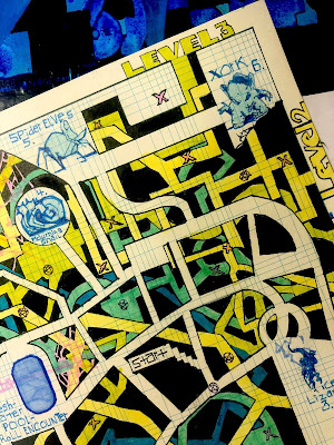 Once I'd done a few of these, I realized this kind of stuff is so relaxing when I DM with it--like when you have one of those stress-DMing situations where you've spent weeks trying to set up a day and everyone is finally available and then the day comes and your head is in five different places and you're like oh fuck game in an hour but I haven't done laundry but if I pull out one of these "activity book" -style adventures--oh man everything is right there. No abstraction, no trying to keep track of people, it's has an 8-bit video game clarity that I can just cruise on. It's easy to stretch parts out, go into descriptions, take your time because you have all the problems the players are about to face very clearly laid out.