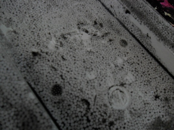 Still gotta do it outside though... then paint with elmers glue and then some color that is right for ooky looking alien-spider holes.