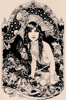 There is a cruel Queen of Hearts: she is in a different castle and she is on a different mountain and she sleeps in a different wooden box, but she is also hiding and dreaming. She dreams into being a world unending, unbeginning, with wonder and murder, disruption and unreason. And melancholy green gardens. And it is there now. And hers.