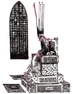 Archbishop Sarpedon, blessed of Tiamat. His "4 claws and 5 fangs"--an army of welded warbands--is possessed of powerful chaos magic (dumb ideas welcome and a bonus to succeed) but prone to faction and disobedience (GM rolls 1 in 6 chance of fuckup). He is currently drawing these forces toward The Spasm beneath the former fortress of deceased Ferox in the radioactive rain forest of Cobalt Reach.