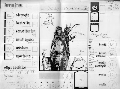-Went down to comic con last minute (didn't expect to) with Satine for work (meetings with some people at One Of The Big 2 about maybe making something for them). Had fun at the Chessex table: didn't go in for all the shiny candy dice but did pick up: d8 result weather die, d8 random race die, d12 random class die (they make ad&d, 4e and 3.5 versions, so far as I can tell), a d12 random hit location die (not sure exactly what mechanics to use it with yet) and, most exciting, some blank dice. (This stuff mostly availble