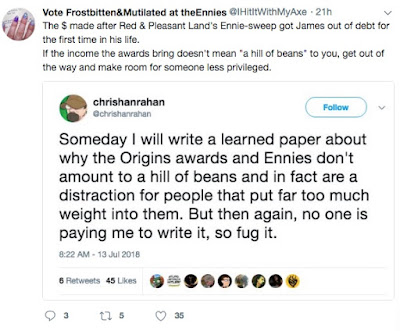The bar for entry is as low as it's been since the wargame days, and DIY RPG output has never been better. In the past, I've pointed out that by DIYing it you can make more money than pretty much any RPG freelancer, right now I'm going to go farther: