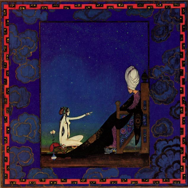 83- A monarch in disguise, with retinue in disguise as merchants, searching all the world for a queen.