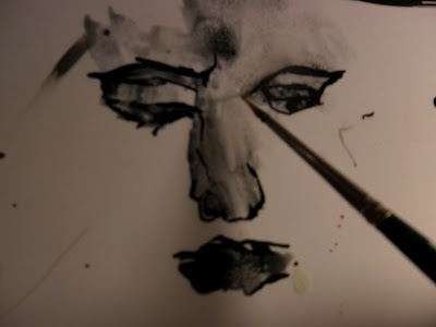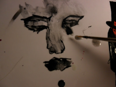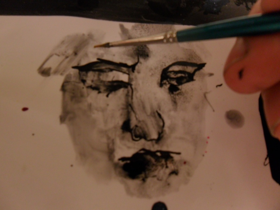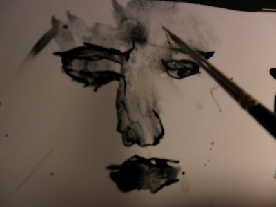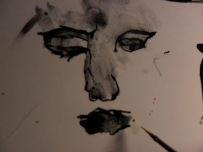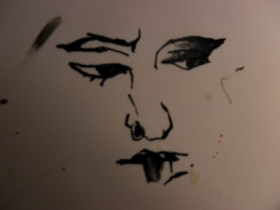 Human opera singer with a stylised serpent’s face tattooed over his own.