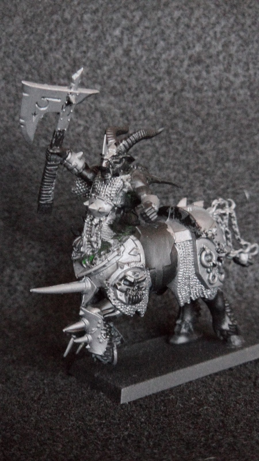 A fierce battle has raged for three days around a well defended Kislevite fortress. Chaos Warbands from all over the North have come to take part in the carnage, burying their rivalries in the greater aim of comquest. At last the Kislevites are driven into their last sanctuaries, leaving the forces of Chaos triumphant. As Champion A and his warband roam through the broken streets they see the warband of Champion B. They are dragging a huge altar cloth behind them, and wrapped in its ancient folds is a pile of golden relics and cult objects looted from the temples throughout the fortress. Immidiatly Champion B unsheathes his sword and his followers do likewise.
