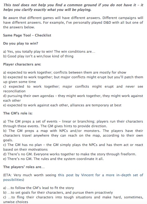 Then to GMs--a few questions but no assertions about possible social dynamics ("what kind of authority or status does a GM have over or with the players anyway? Is he or she the physical host, using physical living or work space for the game?") and then: